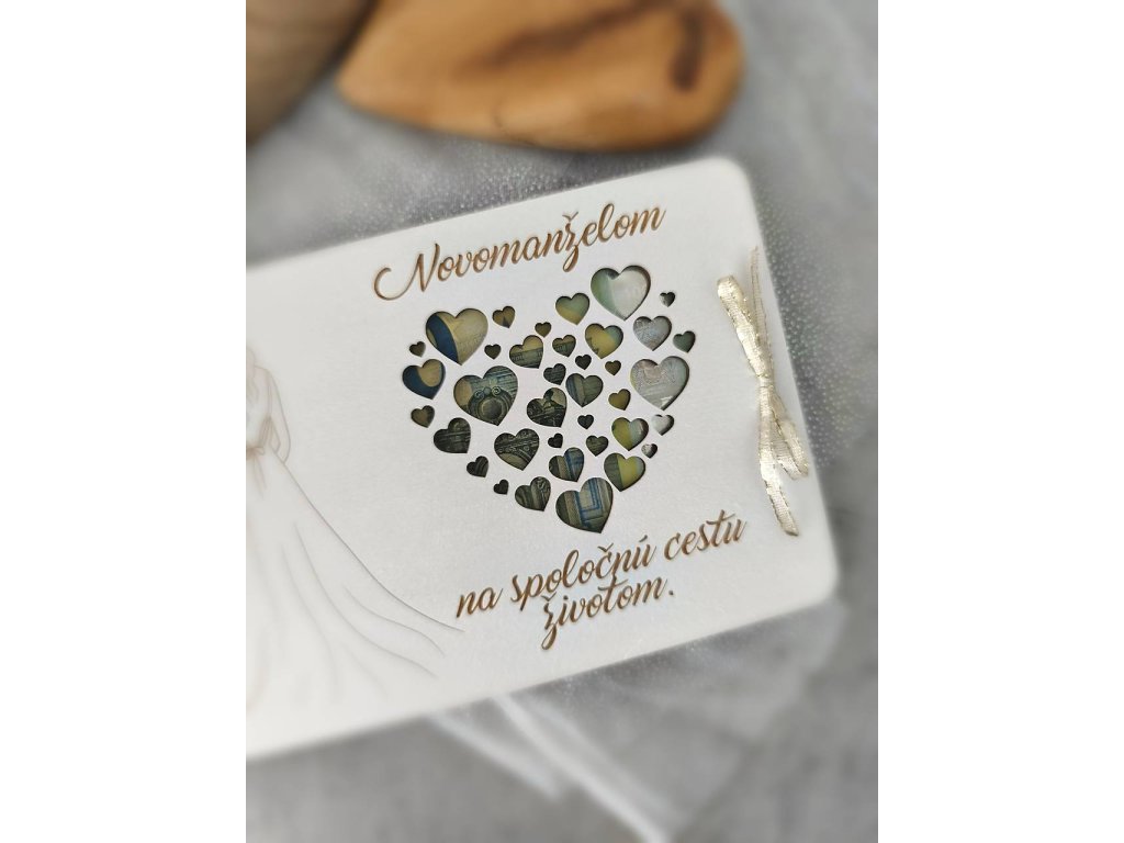 Svadba je výnimočný okamih, ktorý si zaslúži výnimočné detaily. Naša obálka je vyrobená z kvalitnej brezovej preglejky a doplnená o jemné gravírovanie, čo z nej robí unikátny dar vytvorený priamo pre daný pár.