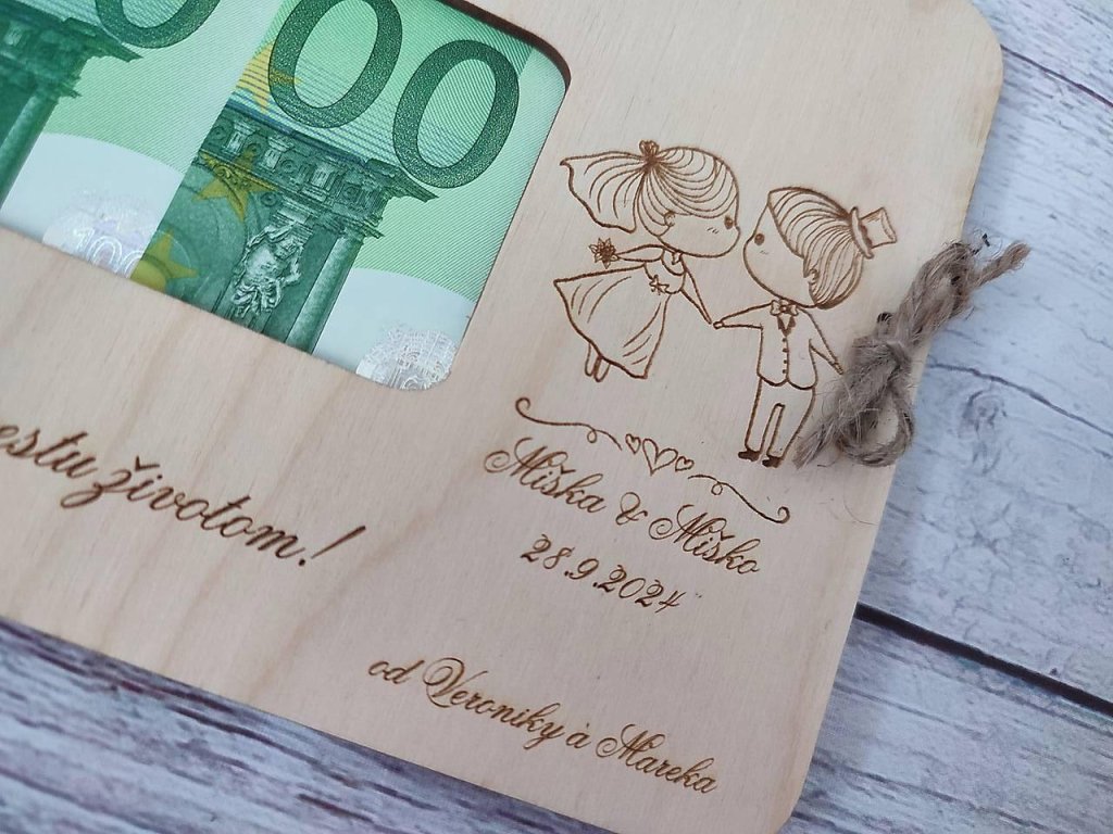 Drevená obálka na peniaze pre novomanželov - Váš prvý milón